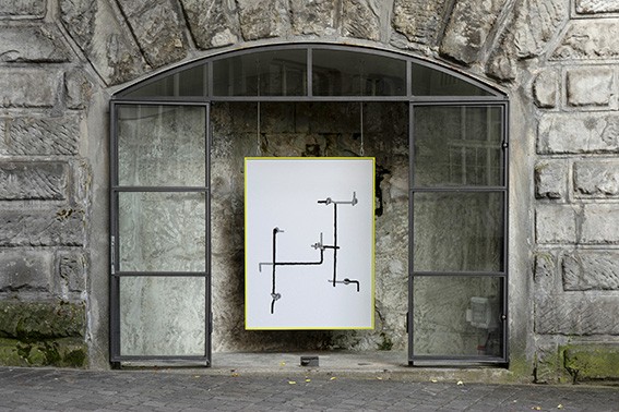 2018, site specific installation, steel, acrylic paint, glass, stove, dimensions variable